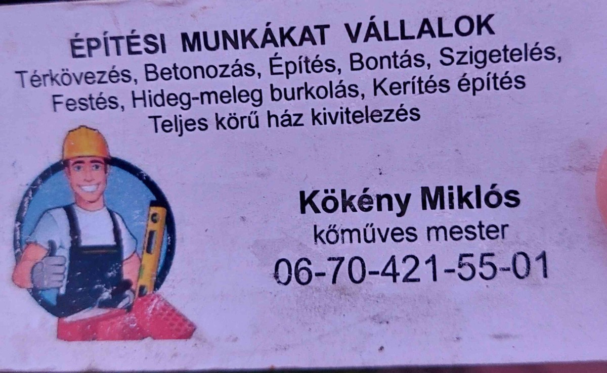 Kökény Miklós vagyok, több éves szakmai tapasztalattal rendelkező kőműves. Munkám során a precizitásra, megbízhatóságra és az igényes kivitelezésre törekszem.